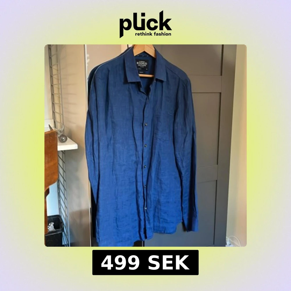 Exklusiv blå linneskjorta från Bondelid med klassisk krage, bröstficka och knappar framtill. Skräddad passform och diskret broderad logga på fickan. Perfekt för dig som gillar stilrena och bekväma plagg med en avslappnad vibe. Nypris 1599