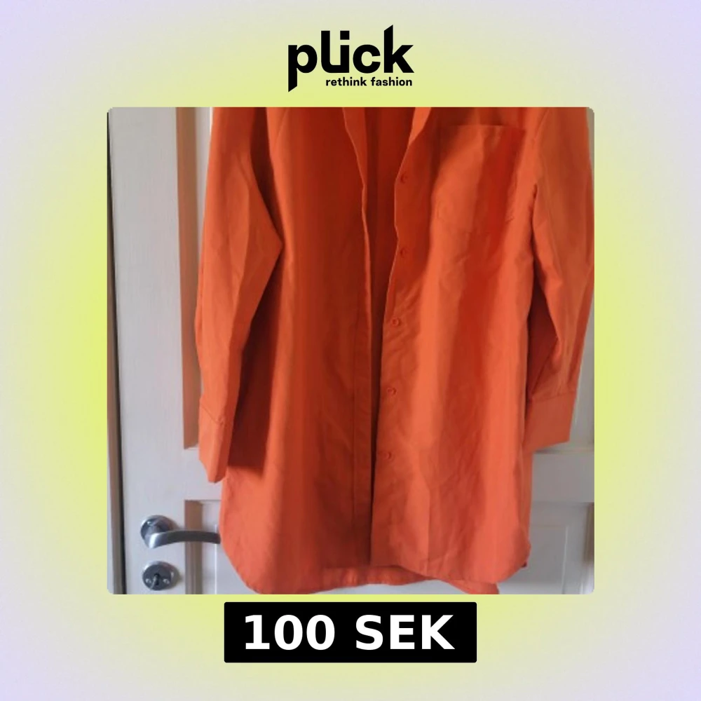 Säljer en orange skjorta från SHEIN i storlek L. Skjortan har klassisk krage, lång ärm och knäppning framtill. Perfekt för dig som vill ha en färgstark och enkel skjorta i garderoben.