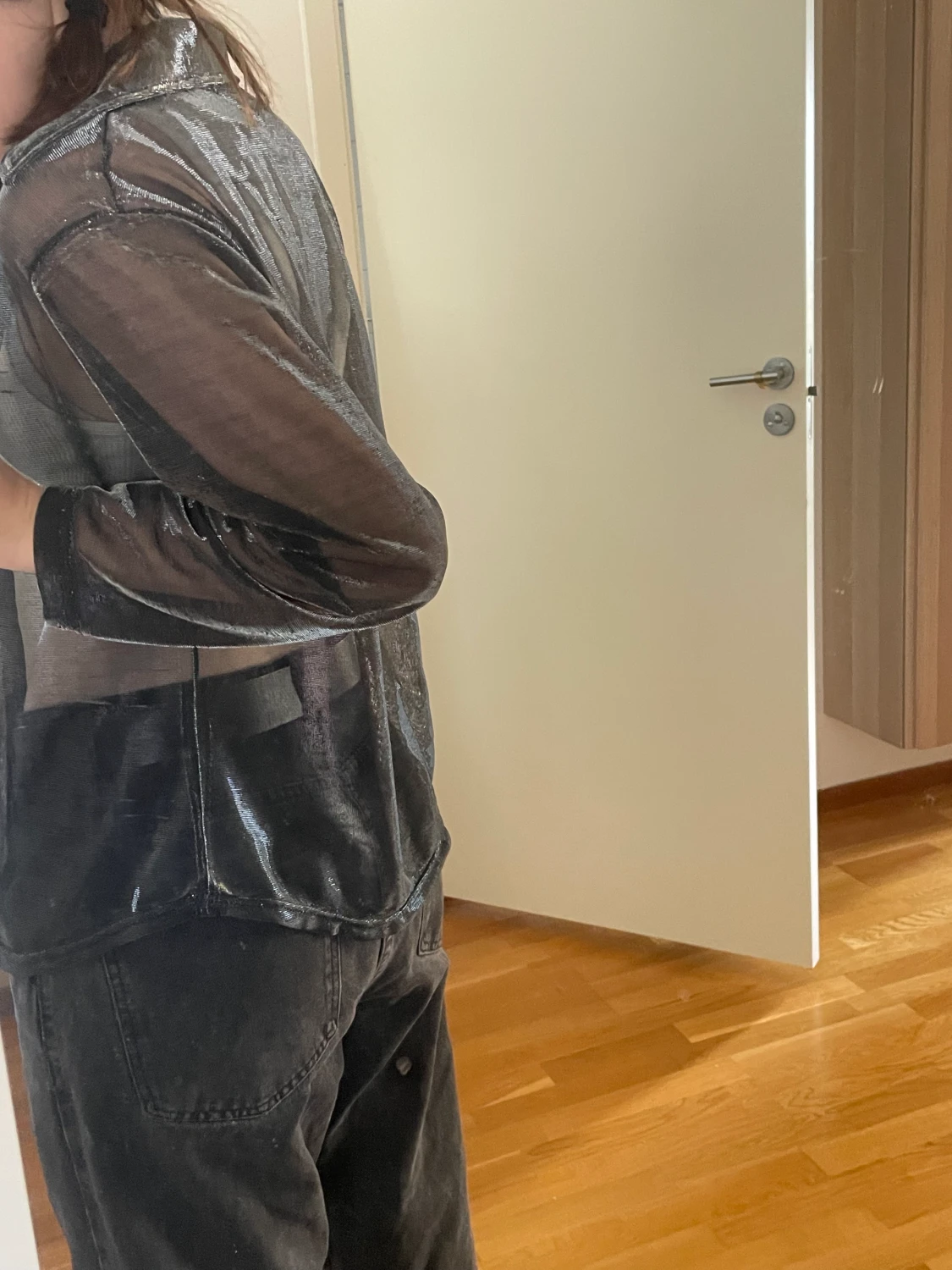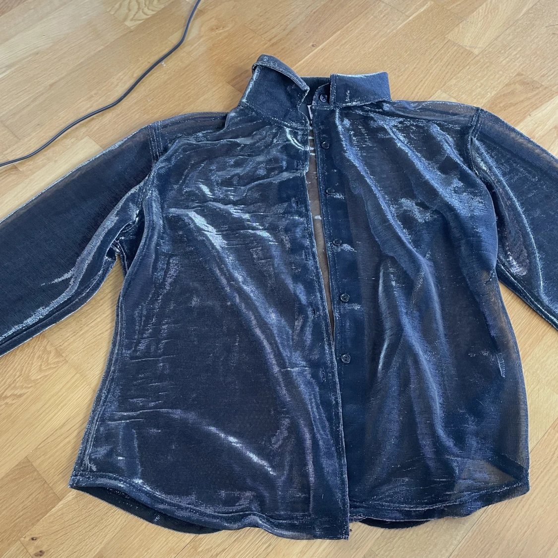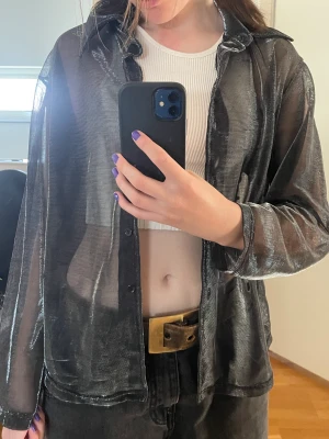 En superfin, silvrig, skjorta som både funkar bra att ha öppen med en topp under eller stängd med exempelvis en spets-bh 🥰 Perfekt nu till sommaren och till fester💓
