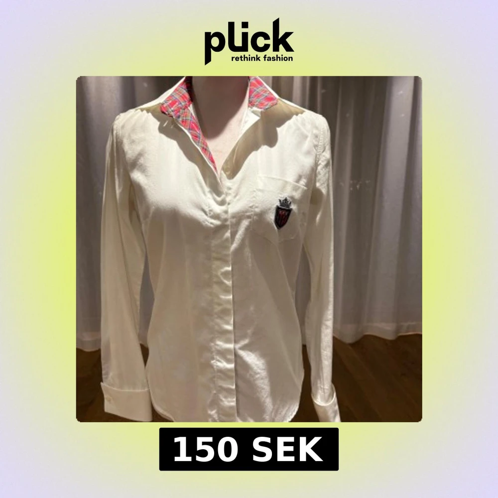 Snygg vit skjorta med en cool rutig krage i rött och blått. Skjortan har ett broderat emblem på bröstfickan som ger en unik touch. Perfekt för dig som vill ha en stilren men ändå iögonfallande look.