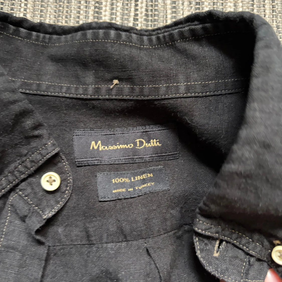 Svart skjorta i 100% linne från Massimo Dutti med klassisk krage, knappar framtill och bröstficka. Skjortan har lång ärm och en stilren, tidlös look som passar perfekt till jeans eller chinos.
