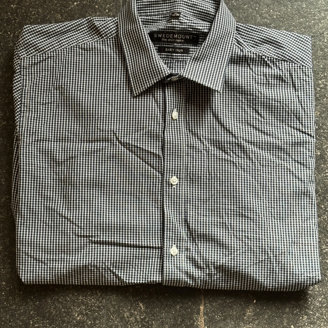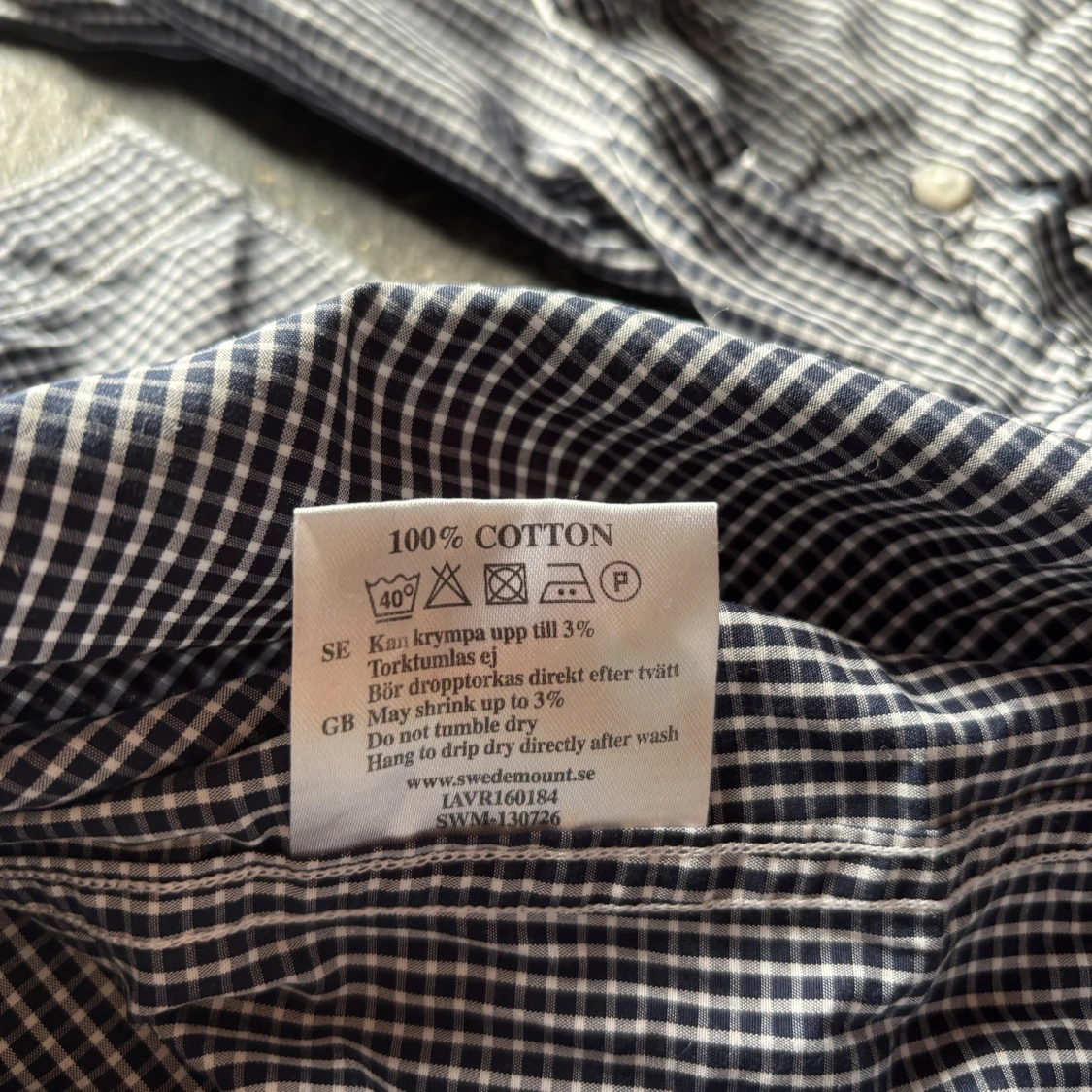 Snygg rutig skjorta från Swedemount i mörkblått och vitt. Klassisk krage, knäppning framtill och långa ärmar med manschett. Skjortan är i bomull och har en stilren, tidlös look som passar till många olika outfits.