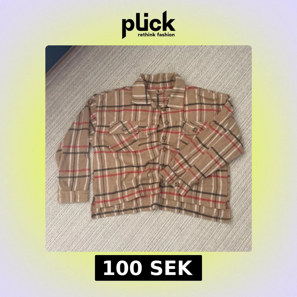 Beige rutig overshirt i bomull