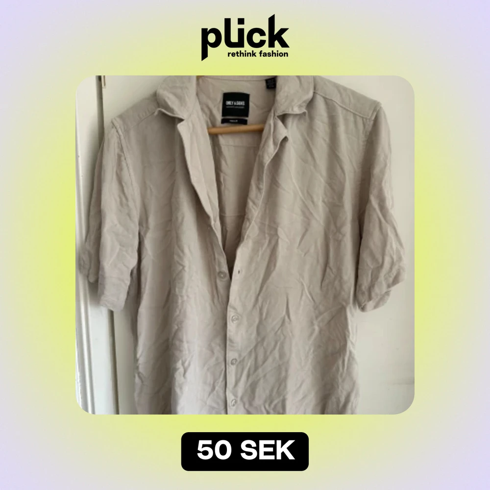 Säljer en snygg beige skjorta från Only & Sons i storlek M. Skjortan är kortärmad och har en klassisk krage med knappar hela vägen ner. Perfekt för en avslappnad sommarlook eller en stilren vardagsoutfit. Materialet känns mjukt och bekvämt.