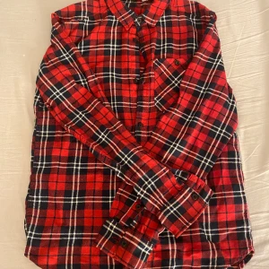 Säljer denna snygga röda skjortan från H&M då den inte är min stil längre. Inte används mycket så är i bra skick! Har en ficka på bysten på höger sida. OBS! Tvättar alltid plaggen innan jag skickar iväg dom.