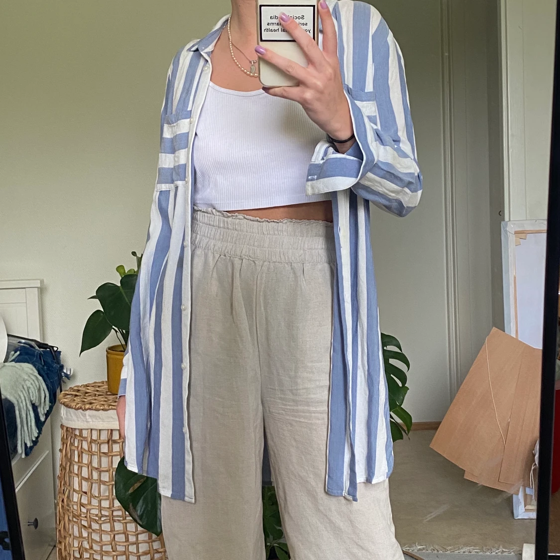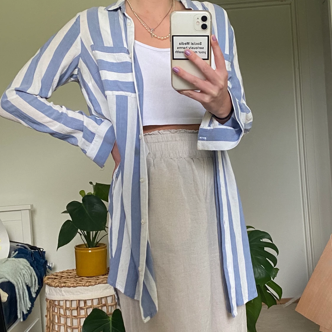 Lång randig skjorta med slits på sidorna! Passar perfekt som strandplagg. Frakt tillkommer 💕