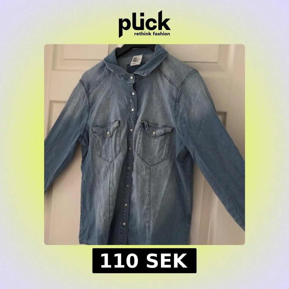Snygg jeansskjorta från H&M i klassisk blå denim. Skjortan har långa ärmar, två bröstfickor med lock och coola tryckknappar framtill. Perfekt för dig som gillar en avslappnad och tidlös stil.