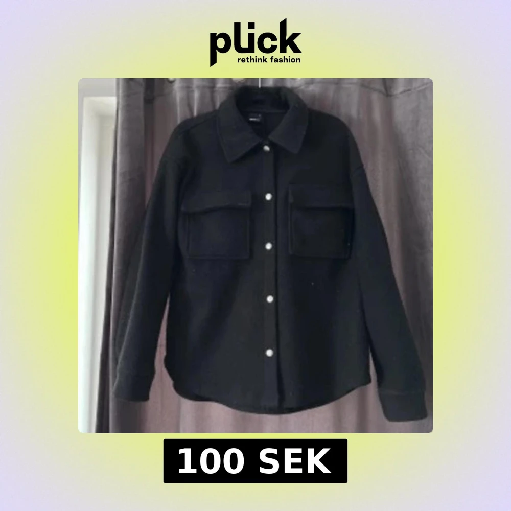 Snygg svart overshirt med klassisk krage och två stora bröstfickor. Skjortan har långa ärmar och knäpps med silverfärgade knappar framtill. Jätte skön att ha på sig och fin. Mer bilder skiv !