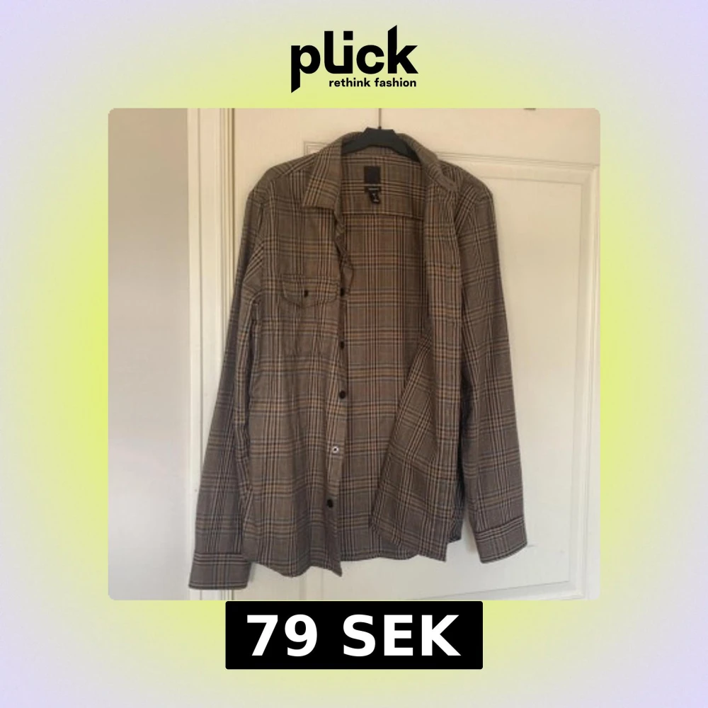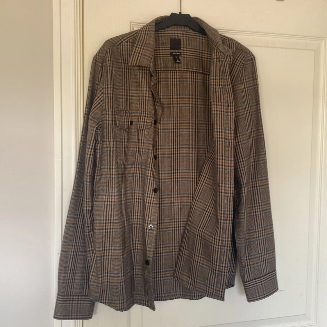 Snygg rutig skjorta från H&M i bruna och beige toner med inslag av blått och svart. Skjortan har klassisk krage, bröstficka och knäppning framtill. Regular fit och långärmad – perfekt för en chill och stilren look.