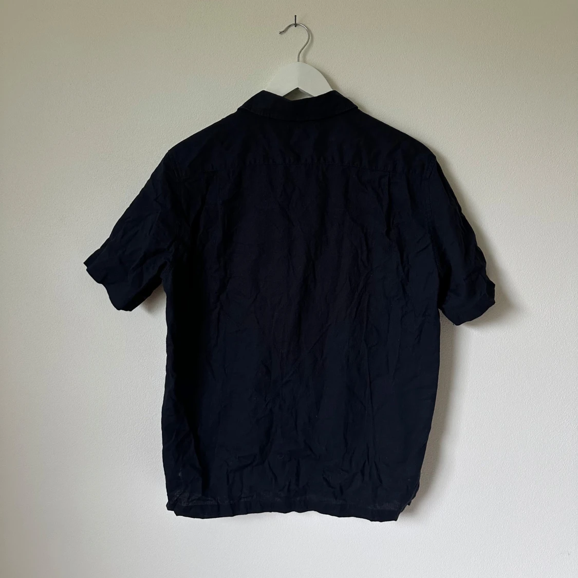 Mörkblå skjorta från H&M i regular fit med korta ärmar och klassisk krage. Skjortan är tillverkad i en blandning av linne och bomull, vilket gör den luftig och skön. Stängs med knappar framtill och har en enkel, stilren look. Artnr: C377