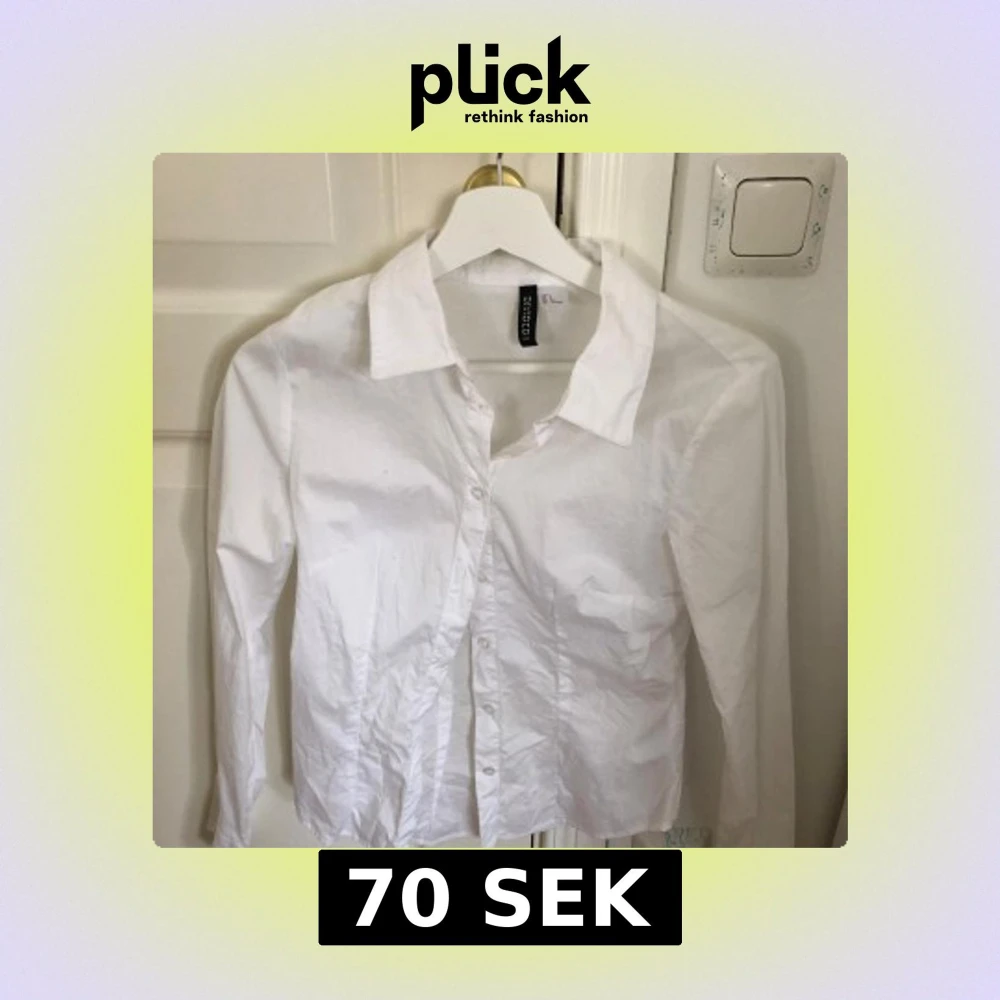 Säljer en klassisk vit skjorta från H&M i storlek M. Skjortan har långa ärmar och knappar framtill. Perfekt för en stilren look.