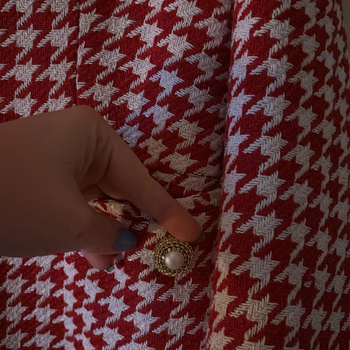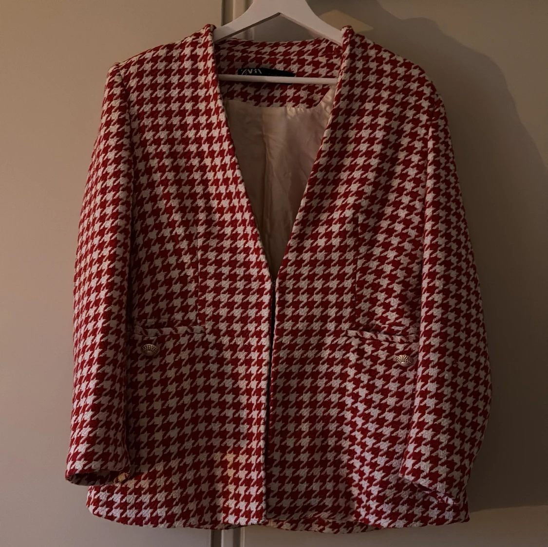 Supersnygg kavaj med hundtandsmönster. Har fina små knappar på fickorna