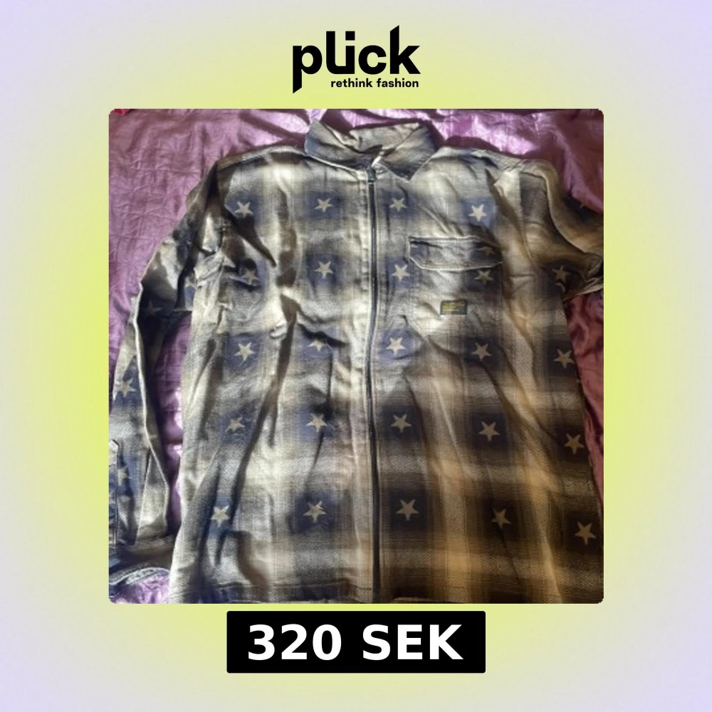 Snygg overshirt från Vailent i storlek L med dragkedja framtill. Skjortan har rutigt mönster i blått och beige med stjärnor över hela tyget. Bröstficka med etikett och klassisk krage. Perfekt för dig som gillar unika plagg med coola detaljer.