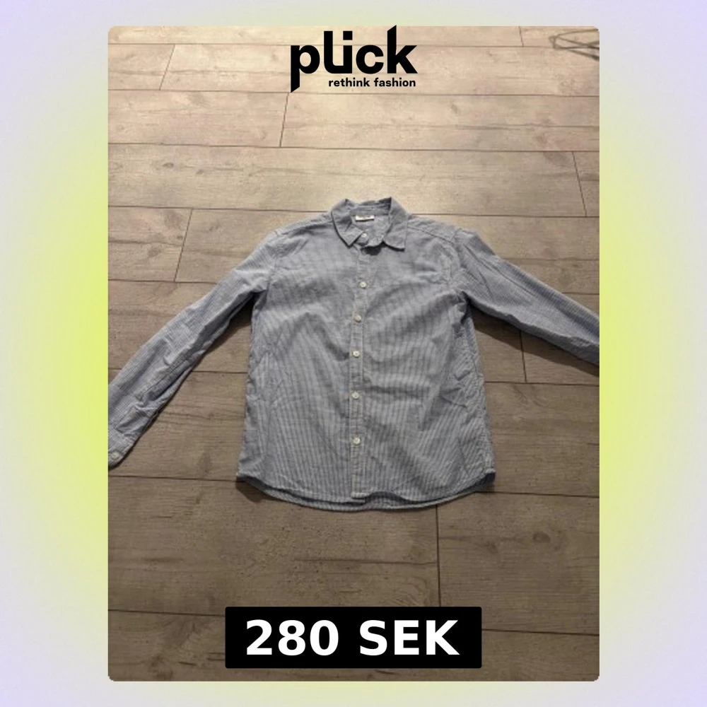 Snygg blårandig skjorta med klassisk krage och vita knappar framtill. Skjortan har lång ärm och är tillverkad i ett lätt bomullstyg som känns skönt mot huden. Perfekt för dig som gillar stilrena och enkla plagg med lite edge. Använd en gång!