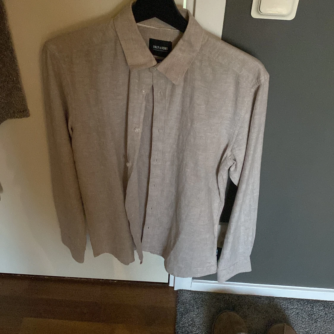 Snygg beige skjorta från Riley med klassisk krage och knappar framtill. Perfekt för en stilren look. Skjortan har långa ärmar och är tillverkad i ett bekvämt material.