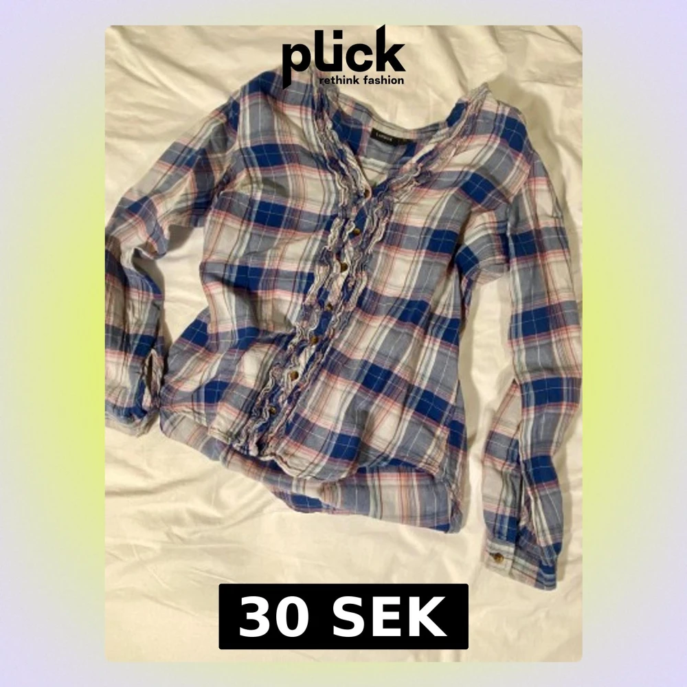Den här skjortans modell är så gullig och jag älskar verkligen mönstret. Volangerna är så fina och den sitter verkligen jättefint. Passar fint på mig och jag är XS/S. #2000s #skjorta #rutig #flannel #bomull