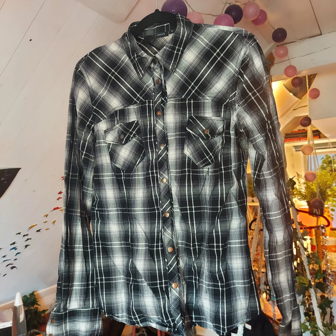 Fin rutig skjorta i bra skick! Köpt second hand och endast använd fåtal gånger. Knapparna är lite slitna men det är inget man märker av💛 Står ej för frakt🧡