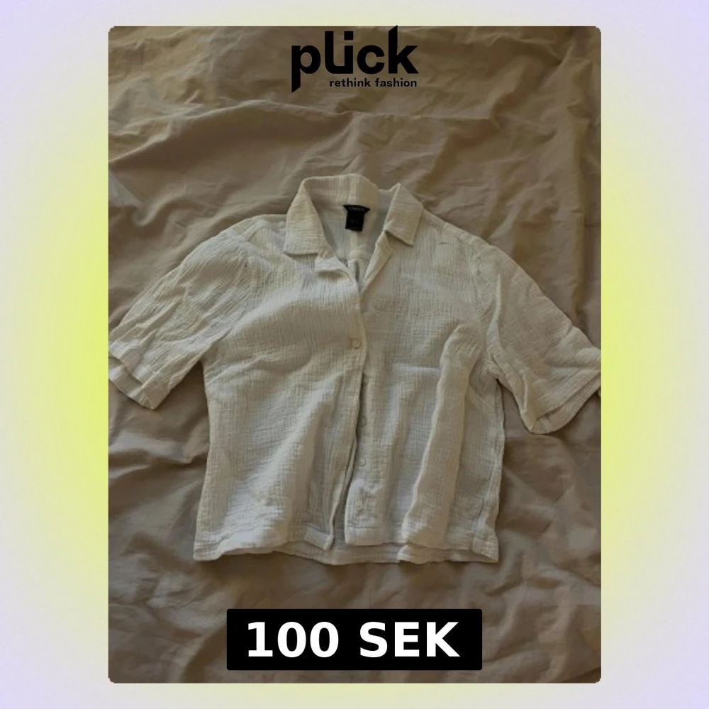 Säljer en vit, luftig skjorta från Lindex med korta ärmar och knappar framtill. Skjortan har en krage och är tillverkad i mjukt, strukturerat bomullstyg som ger en chill och avslappnad vibe. Passformen är loose och skjortan är något croppad.