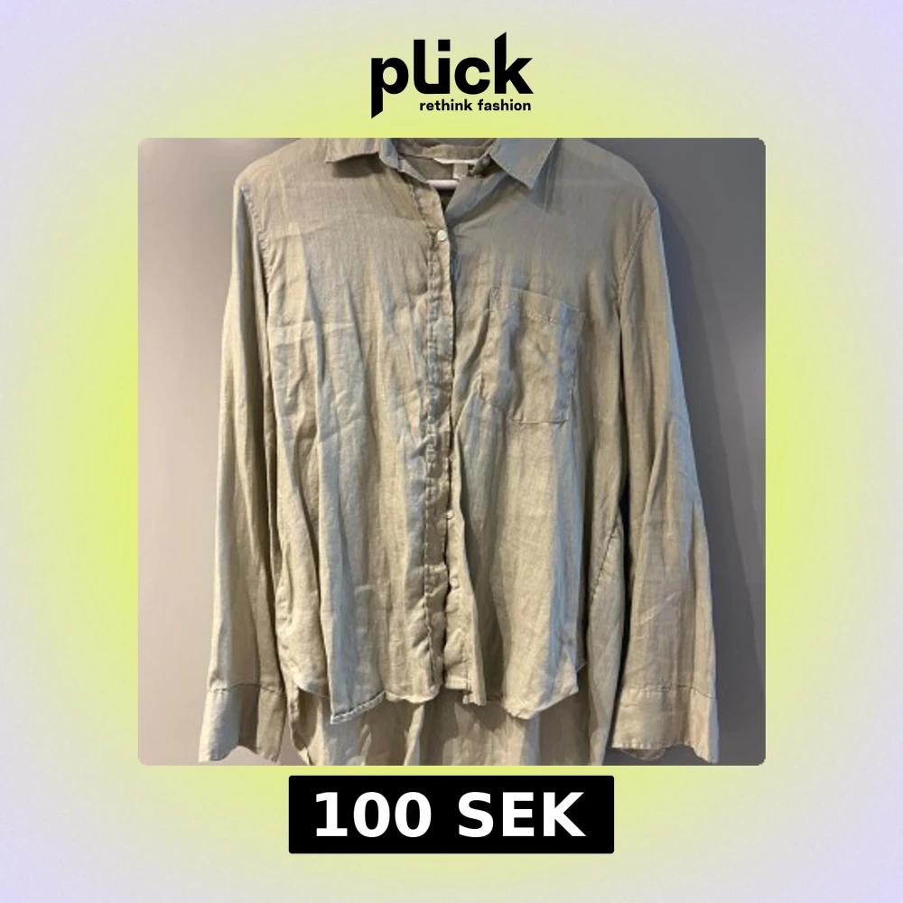 Snygg ljusgrön skjorta i 100% linne från H&M. Storlek M, i mycket bra skick. Mitt pris 100 kr. Köparen står för frakten🫶🏻