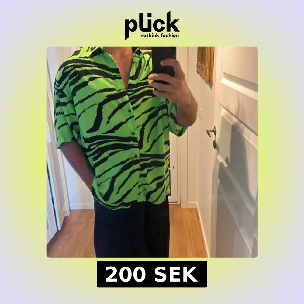 Säljer en riktigt fet grön skjorta från ASOS DESIGN med svart zebramönster. Skjortan har korta ärmar, knappar framtill och en loose fit som ger en avslappnad vibe. Perfekt för dig som vill sticka ut med en unik look.