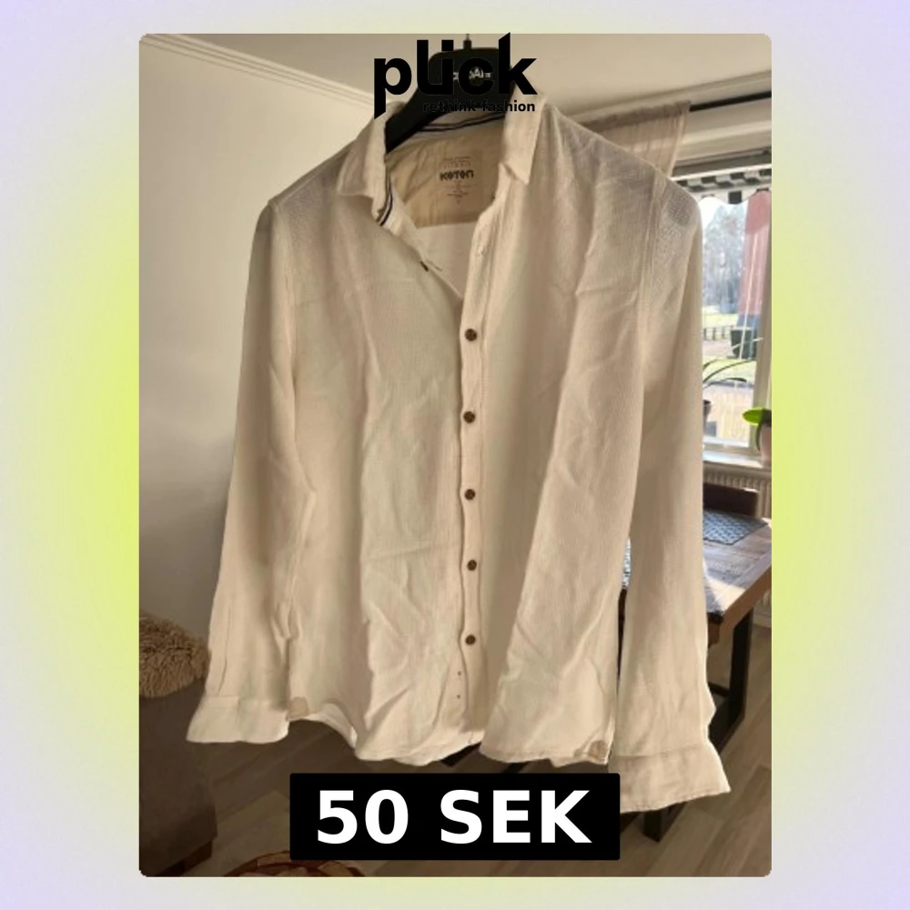 Vit skjorta från Koton i slim fit med snygga bruna knappar och klassisk krage. Materialet är lätt och luftigt bomull, perfekt för varmare dagar. Skjortan har långa ärmar med förstärkta armbågslappar och en stilren, enkel design som funkar till många looks.