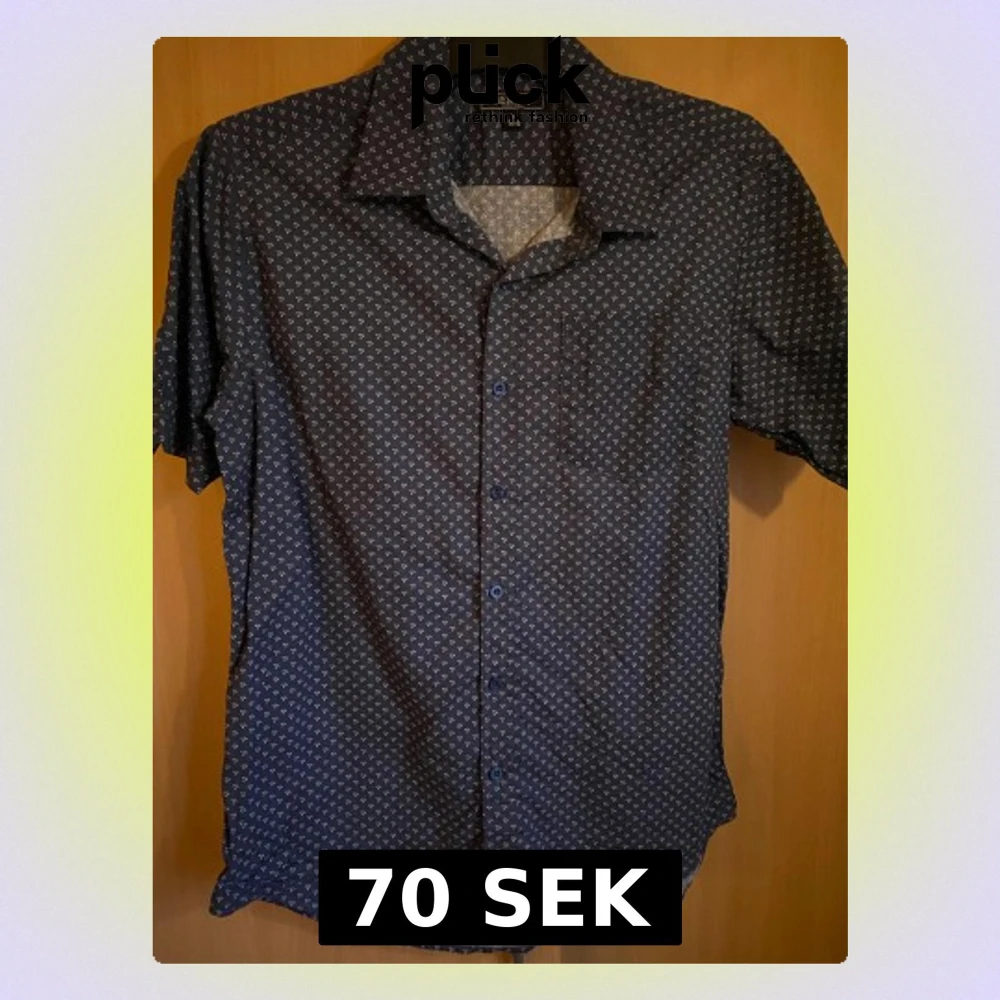 Snygg mörkblå skjorta från Berga med små vita mönster över hela tyget. Skjortan har korta ärmar, klassisk krage och knappar framtill. Perfekt för dig som gillar stilrena detaljer och vill ha en lätt skjorta i bomull.