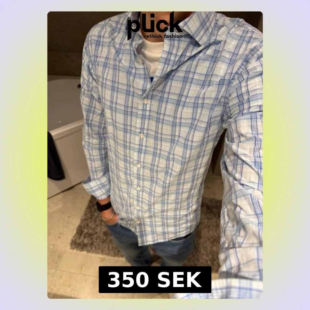 Säljer en klassisk blåvit rutig skjorta från The Shirt Factory. Skjortan har lång ärm, knappar framtill och en snygg krage. Perfekt till jeans eller chinos för en clean look. Storlek 38 och jag på bilden är 183 cm