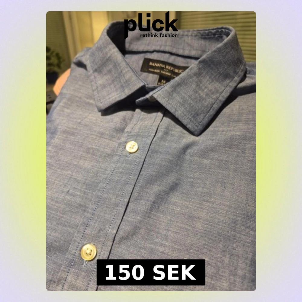 Snygg blå skjorta från Banana Republic i slim fit-modell. Skjortan har klassisk krage, vita knappar och långa ärmar med knapp vid manschetten. Materialet är mjukt och känns som bomull, perfekt för dig som gillar stilrena och enkla plagg.