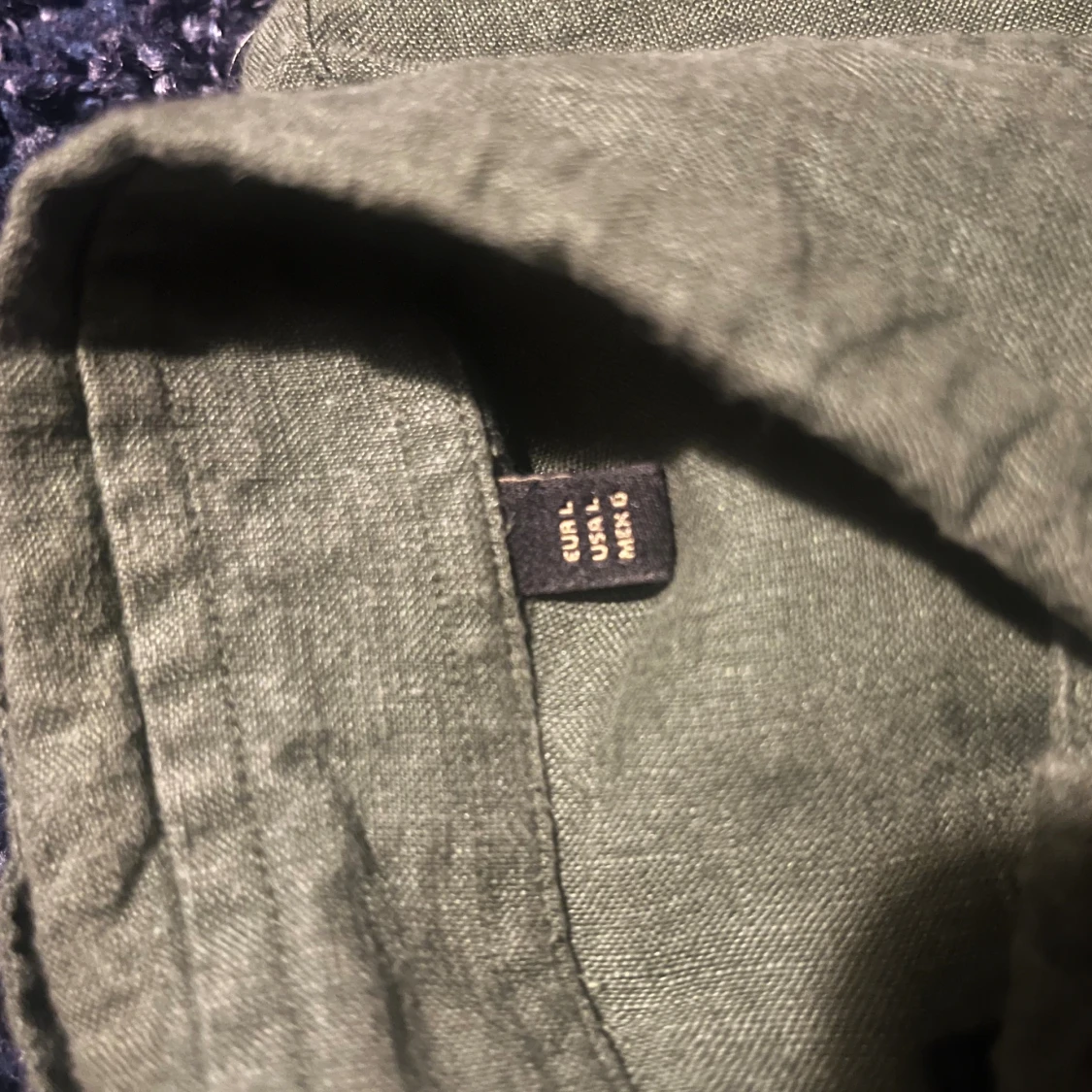 Säljer en grön skjorta i 100% linne från Massimo Dutti. Skjortan har klassisk krage, knäppning framtill med vita knappar och en bröstficka. Perfekt för dig som gillar en avslappnad och stilren look. Den är mer olivgrön inte helt som på första bilden!