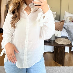 Vit skjorta i tunt material, har band längst ut på armarna man kan knyta ihop💕
