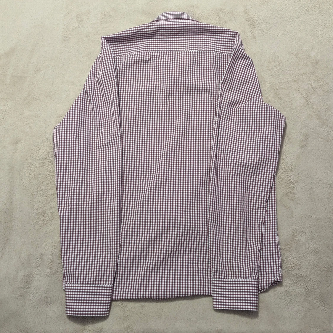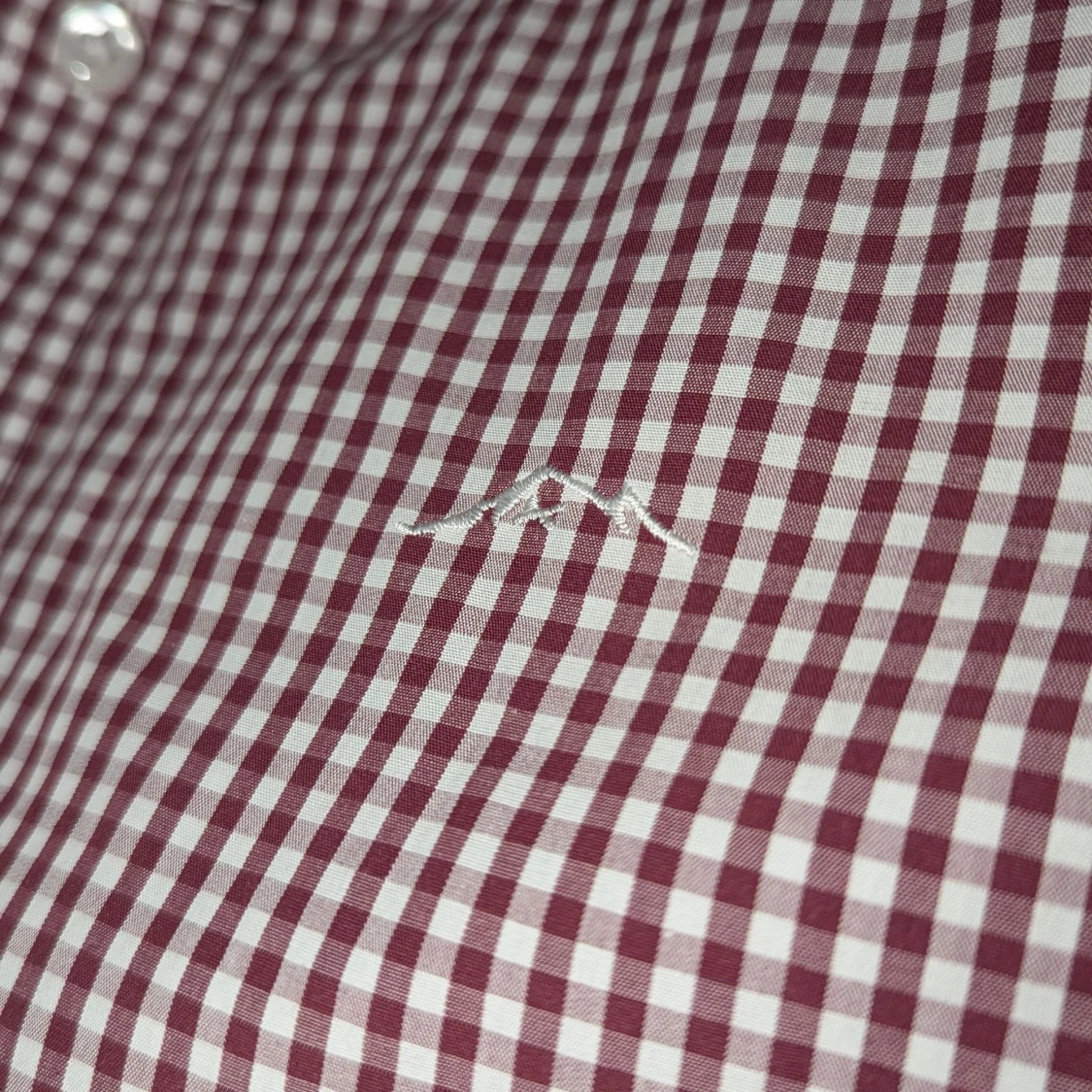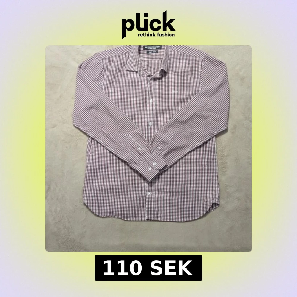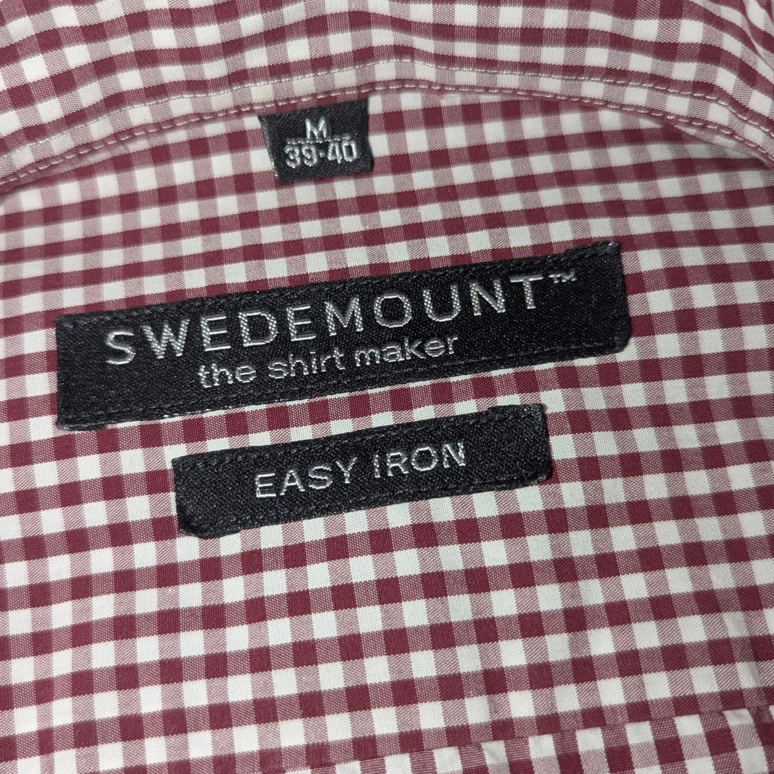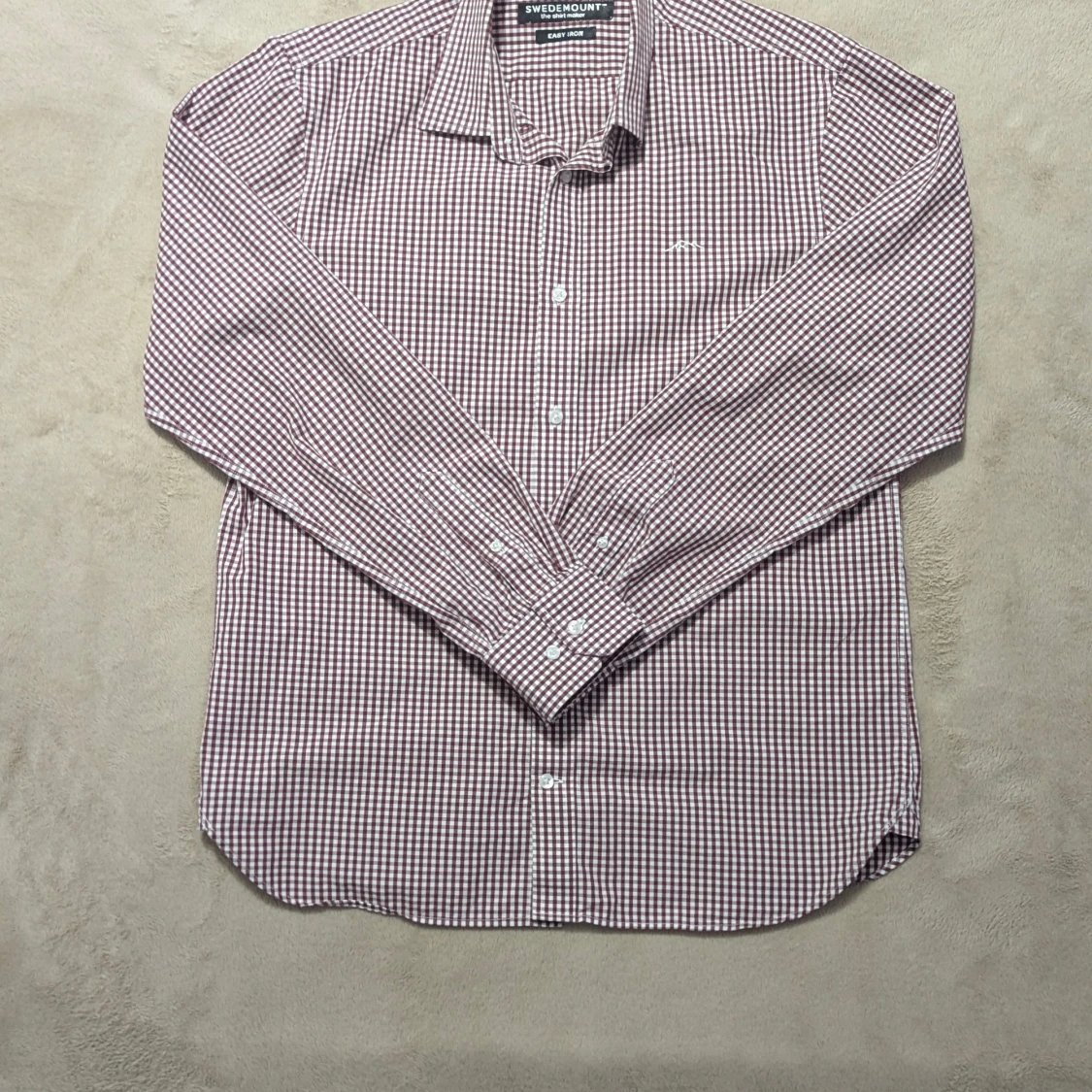 Snygg rutig skjorta från Swedemount i storlek M, med vit och vinröd färg. Skjortan har klassisk krage, långa ärmar och knappar framtill. Materialet är bomull och har easy iron-funktion. Broderad Swedemount logga på bröstet för extra stilpoäng.