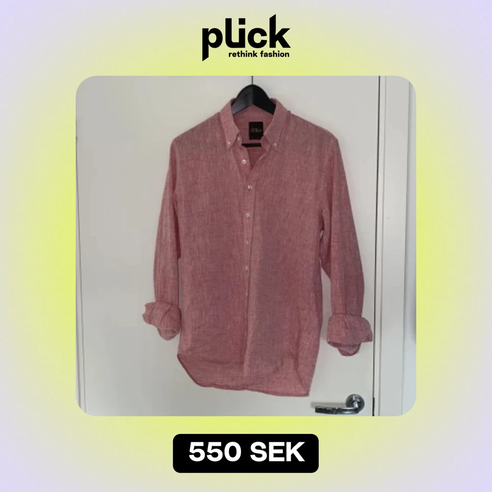 Röd/Rosa linneskjorta från Oscar Jacobsson. Jättefint skick och kvalitet.