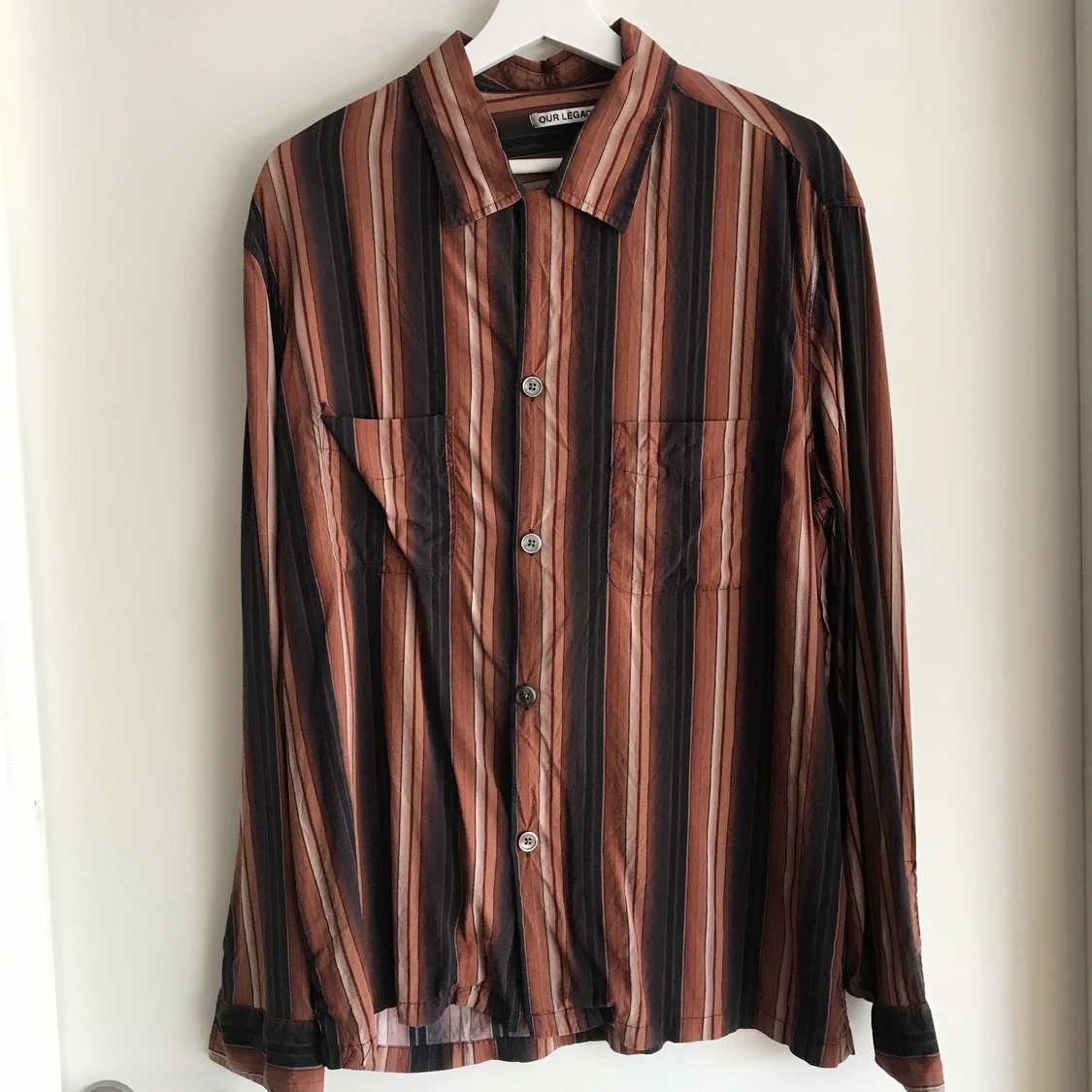 Brun skjorta från Our Legacy. Bara använd några gånger. Väldigt skön och flowy i viskos. Storlek 48. Mått: p2p: 55 cm axlar: 47 cm längd: 72 cm