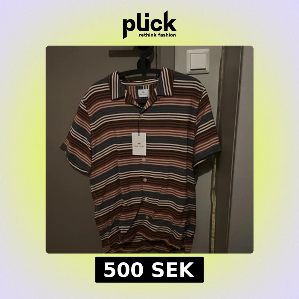 Kortärmad skjorta från Paul Smith med färgglada horisontella ränder i brunt, blått, vitt och rosa. Skjortan har klassisk krage, knäppning framtill och en loose fit. Perfekt för dig som vill sticka ut med en cool och avslappnad stil.