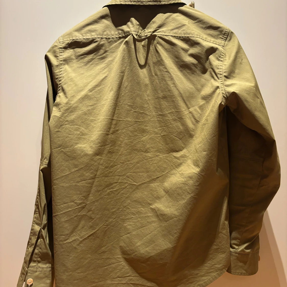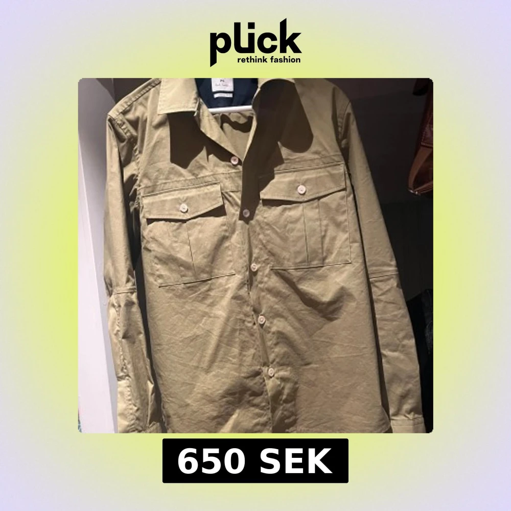 Snygg olivgrön overshirt från Paul Smith i casual fit. Skjortan har två stora bröstfickor med lock och vita knappar framtill. Tillverkad i bomull och polyamid. Perfekt för lager-på-lager och chill stil. Klassisk krage och långärmad modell. Använd cirka fem gånger.