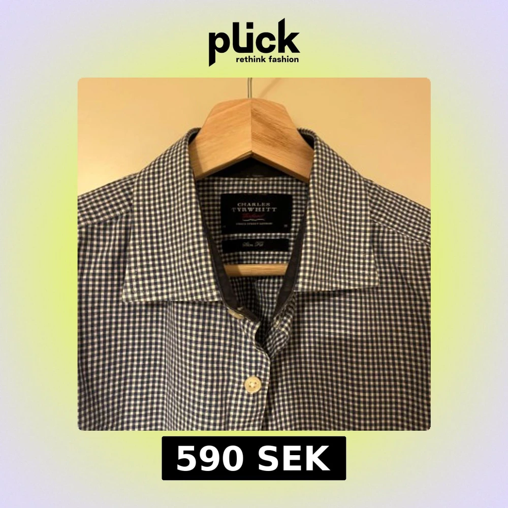 Snygg rutig skjorta från Charles Tyrwhitt i blått och vitt. Skjortan har långa ärmar och klassisk krage med knappar framtill. Perfekt för en stilren look.