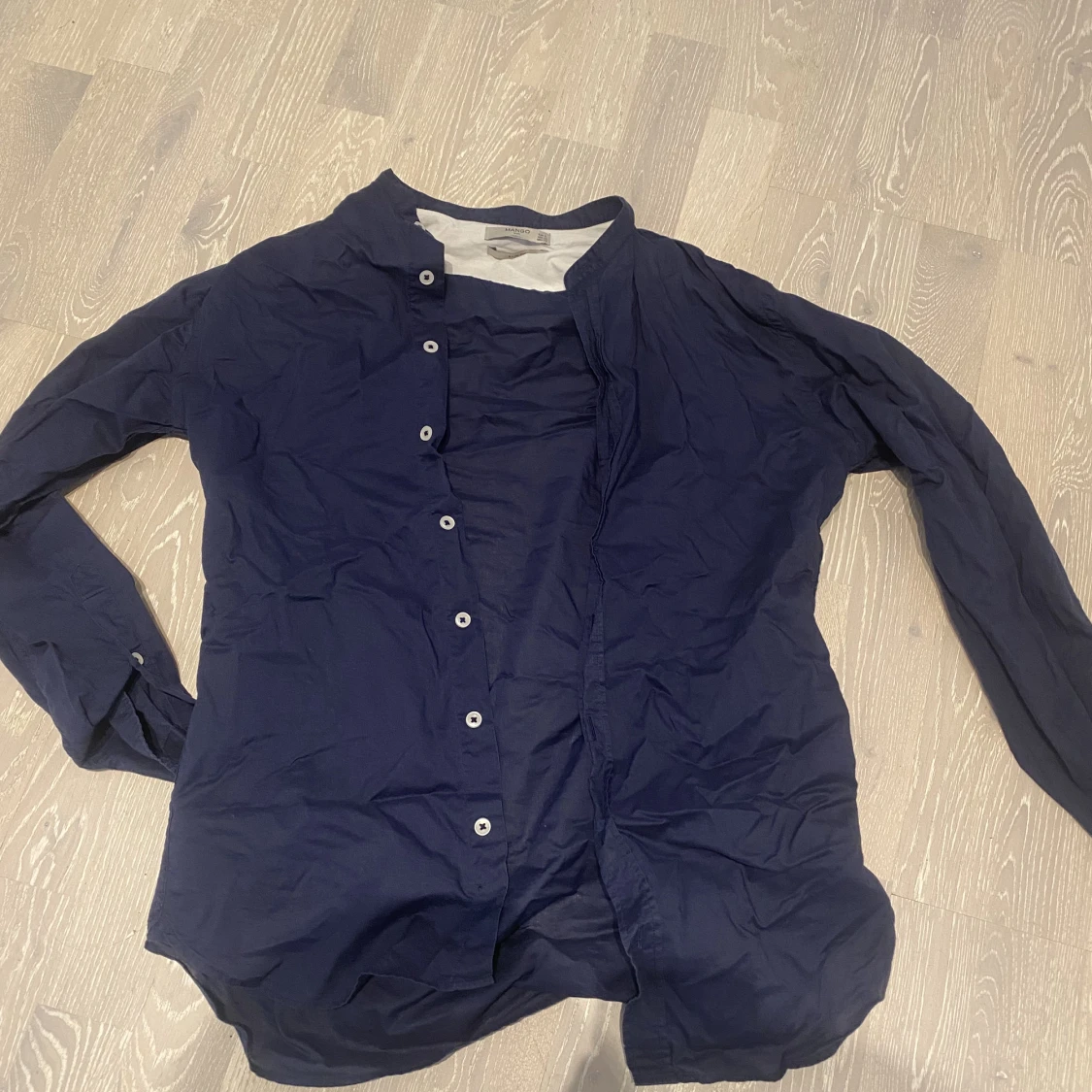 Snygg marinblå linneskjorta cool design utan krage. Storlek S 💗 perfekt till sommaren