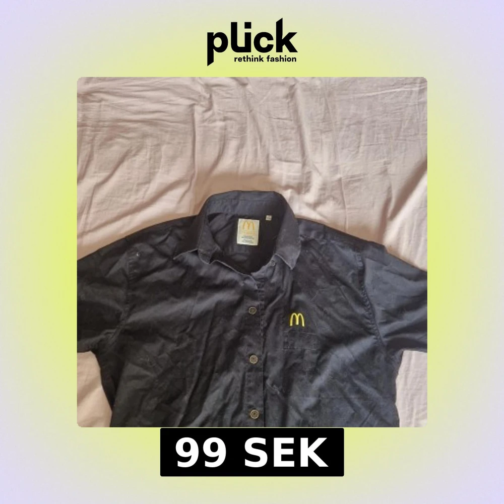 Svart skjorta från McDonald's Professional Workwear Edition med klassisk krage och knäppning framtill. Broderad gul McDonald's-logga på bröstet. Perfekt för dig som vill ha en unik och ikonisk skjorta.