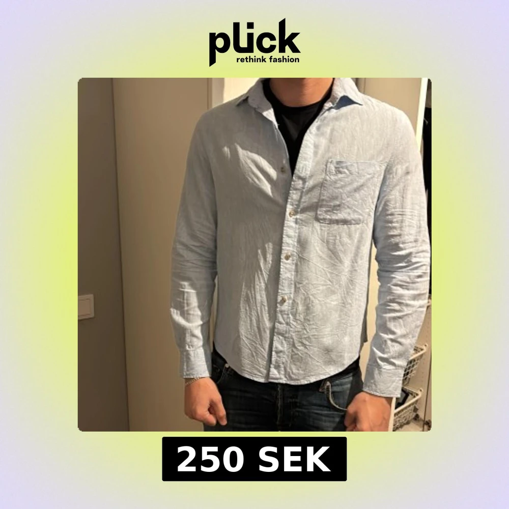 Ljusblå skjorta i bomull med klassisk krage och bröstficka. Skjortan har knappar framtill och långa ärmar med manschett. Perfekt för en avslappnad men ändå stilren look. Storlek s men passar m lite bättre. Köpte den men aldrig använt då den var för lång på mig