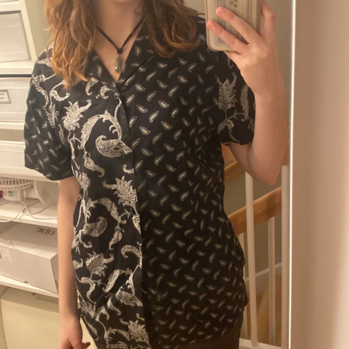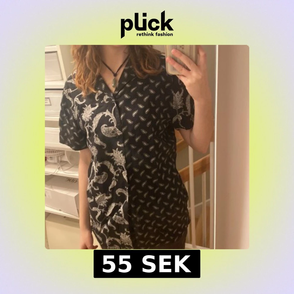 Svart skjorta från New Yorker med korta ärmar och olika mönster i vitt. Storlek S men sitter ganska löst.