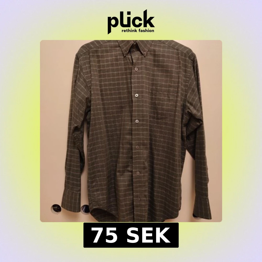 Säljer en grön långärmad skjorta från Banana Republic i 100% bomull. Skjortan har ett rutigt mönster i vitt, klassisk krage och knäppning framtill. Perfekt för dig som gillar en avslappnad och stilren look.