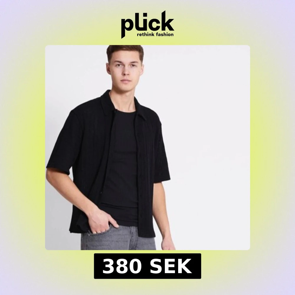 Svart skjorta med kort ärm och avslappnad passform. Skjortan har ribbad struktur och knäppning framtill, perfekt för en clean och stilren look. Passar dig som gillar minimalistiska vibes och enkel design.
