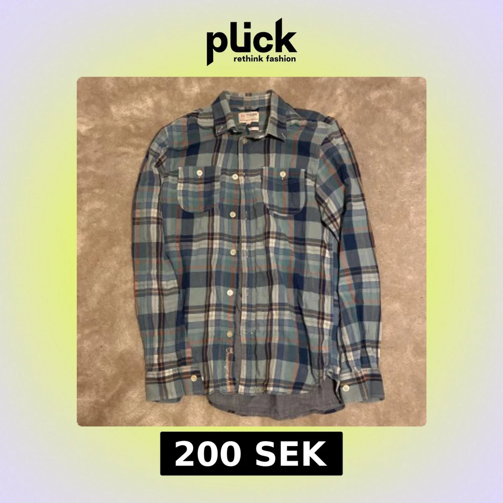 Rutig skjorta från Knowledge Cotton Apparel i slim fit. Skjortan är blå med inslag av grönt, vitt och orange, har två bröstfickor med knappar och är tillverkad av 100% ekologisk bomull. Är öppen för ett lägre pris vid snabb affär. Om ni har några frågor skriv gärna!