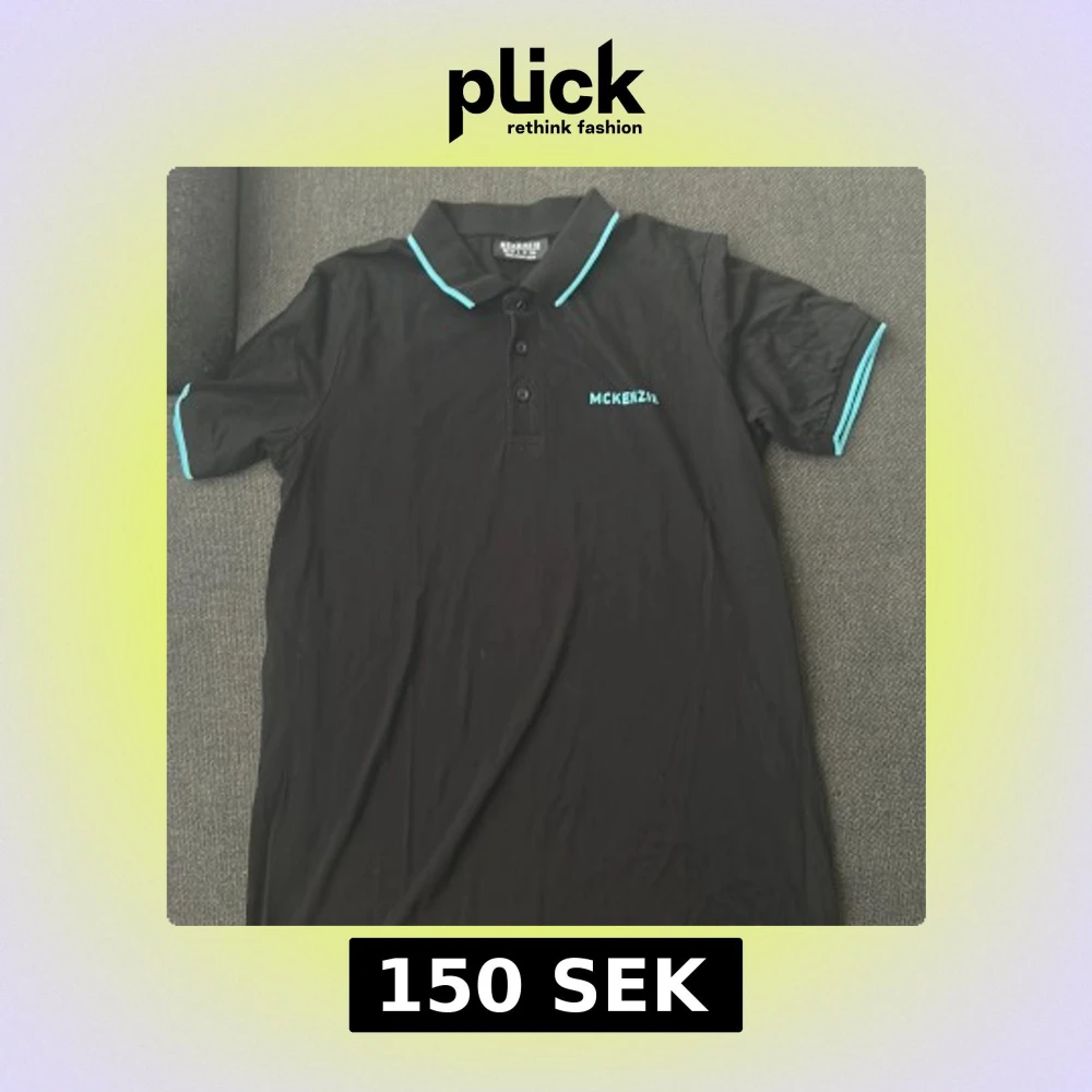 En svart skjorta med blåa mckenzie färg perfekt till fester familje träffar födelsedag och allt annat i storlek S
