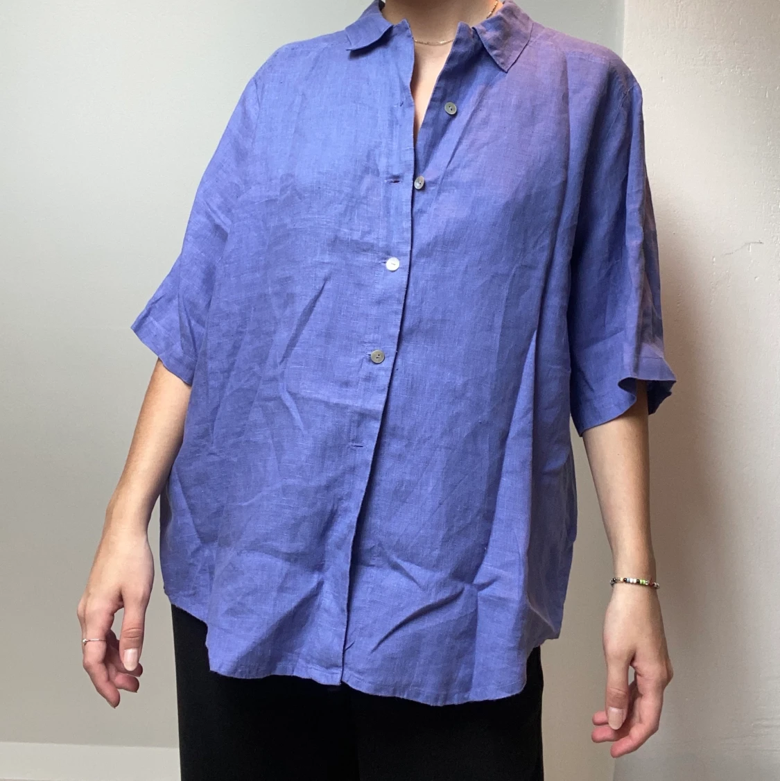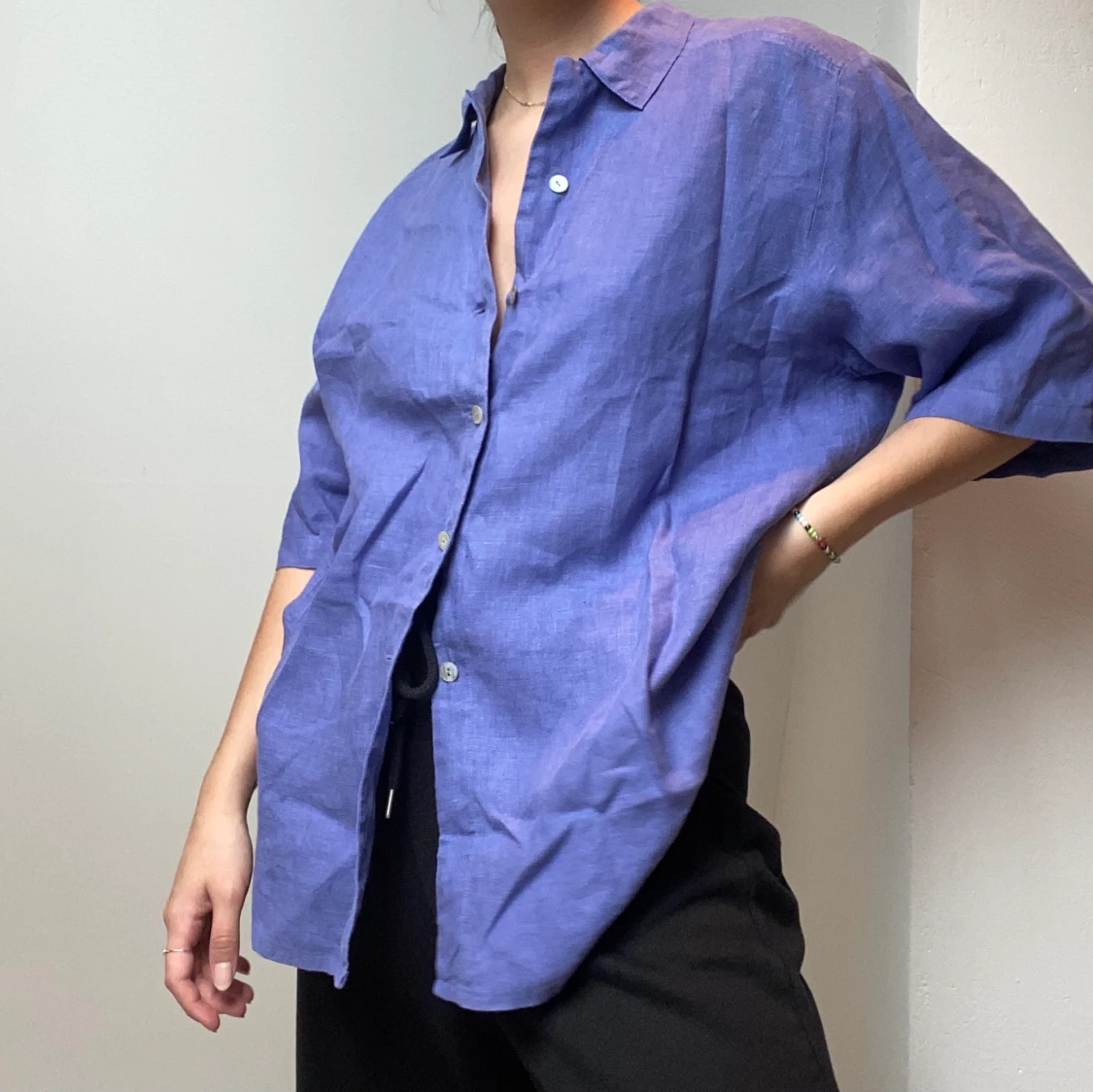 En fin blå skjorta köpt på Second hand som aldrig har använts tyvärr! Nu får någon annan använda den!