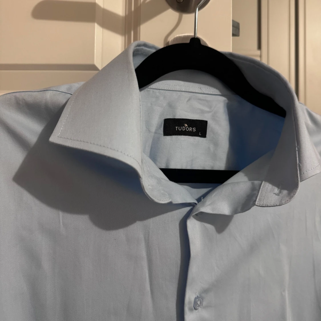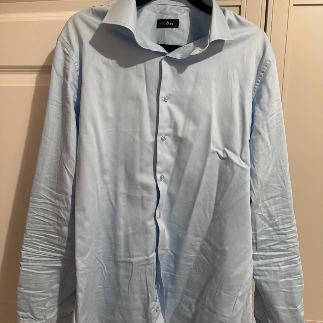 Säljer en stilren ljusblå skjorta från Tudors i storlek L. Skjortan har långa ärmar och knappar framtill. Perfekt för både vardag och festliga tillfällen. Materialet känns mjukt och bekvämt. Passar bra till både jeans och kostymbyxor. Ett måste i garderoben! 💙 (oanvänd helt ny, säljer den pga att den inte passade min man)