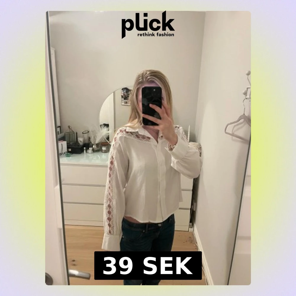 Skjortan/blusen köpte jag second hand på stadsmissionen men den är från SHEIN, inga tydliga tecken på användning. Den har långa ärmar och snygga spetsdetaljer längs axlar och ärmar. Skjortan har klassisk krage, knäppning framtill och en lite loose passform. Perfekt för dig som gillar en feminin och trendig look.