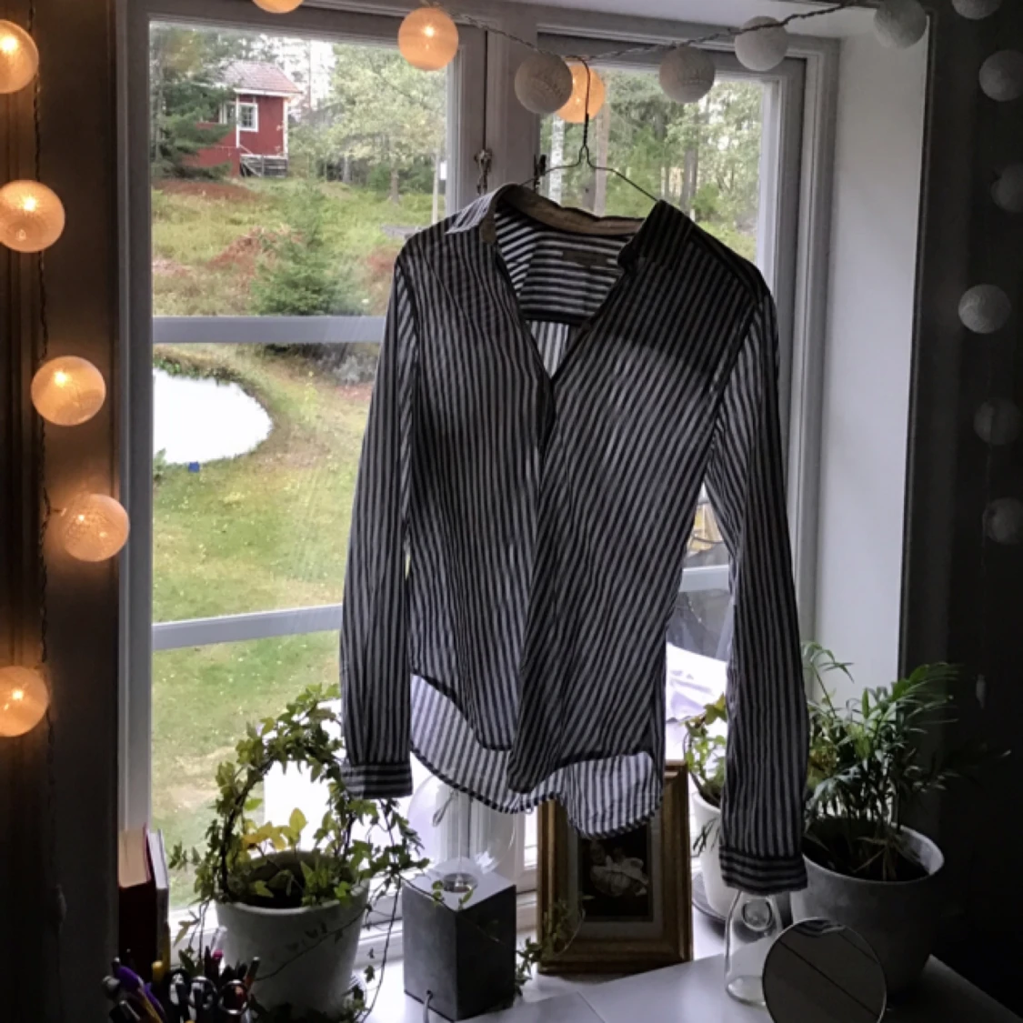 En skjorta för dig som tycker om randigt och att vara trendig! Jättefin i strorlek 38, men skulle även säga att den passar en med storlek 36! Den är ursprungligen från Springfield, men jag har köpt den på en mysig loppis! Den är i nyskick!