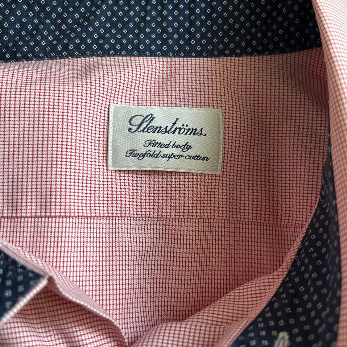Snygg röd skjorta från Stenströms med diskret rutigt mönster och klassisk krage. Skjortan är i bomull och har vita knappar framtill. Perfekt för dig som gillar stilrena och fräscha plagg med en modern touch. OBS ALDRIG ANVÄND!!