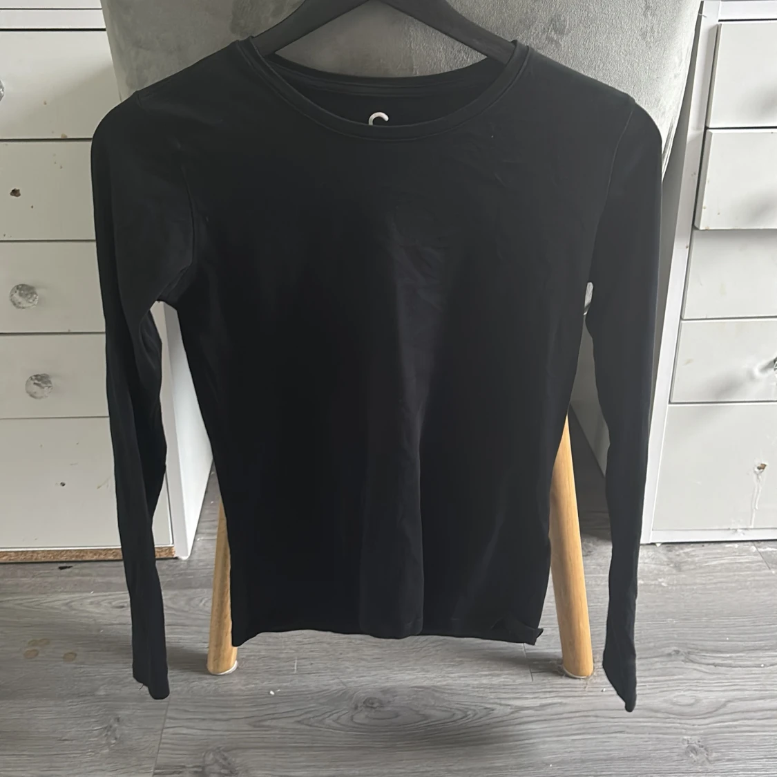 En stilren svart långärmad tröja med rund halsringning. Perfekt som basplagg och enkel att matcha med olika outfits. Tillverkad i mjuk bomull för en skön känsla hela dagen.